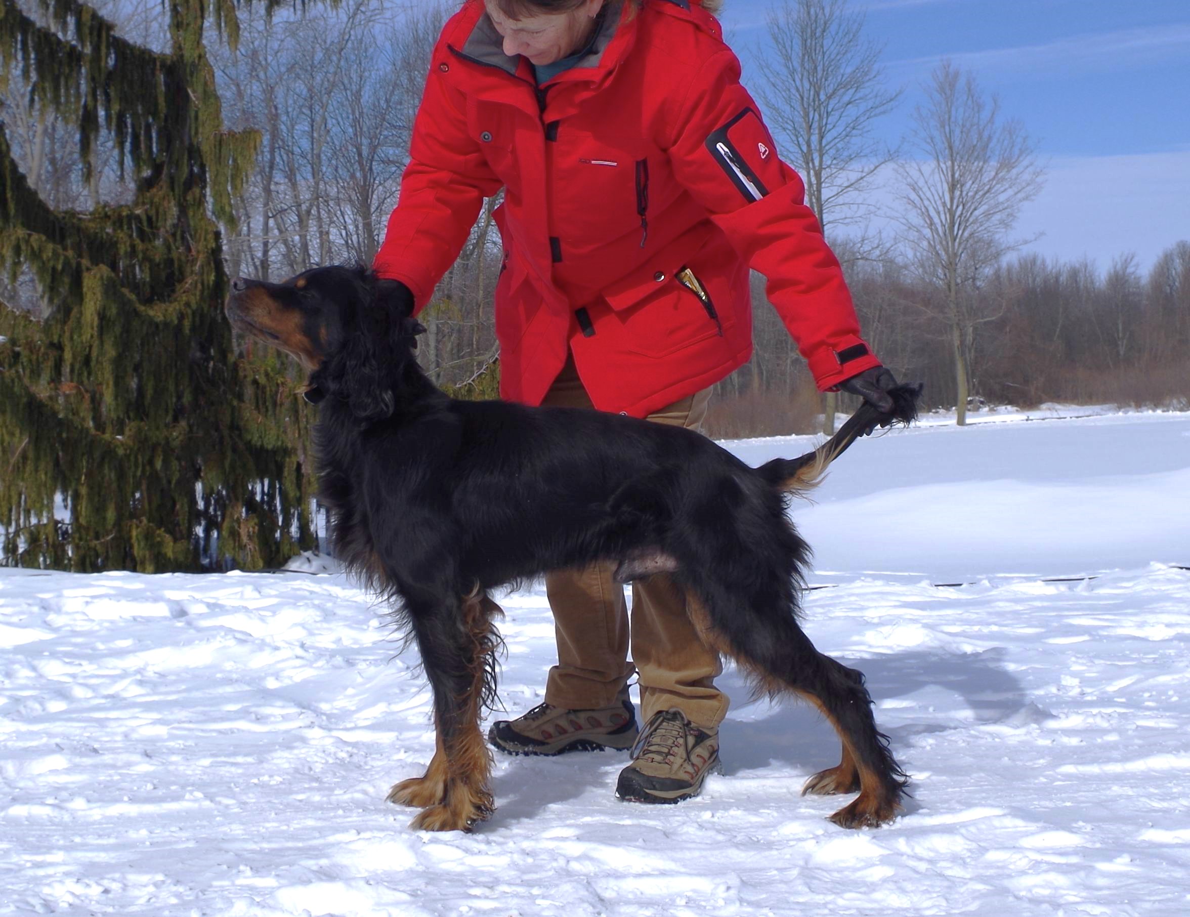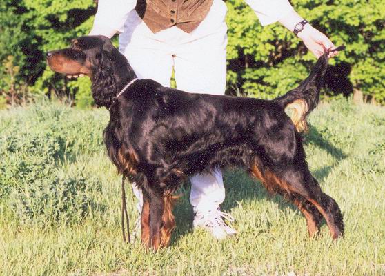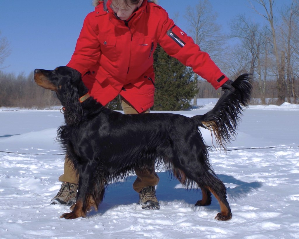 Like it or not, in North America there are different types of Gordon Setters: Show – Dual – Field. This situation will probably never change because people breed to win in their field of endeavour. The Canadian Kennel Club breed standard instructs judges to favour larger and heavier dogs, the Field Trialers (competitive hunters) require a smaller, stylish (high head, very high tail), more athletic dog with better endurance to win their events.